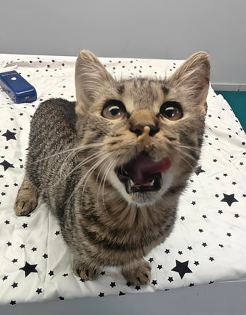 Now safe with us, Harry and Hermione form a tiny wizarding duo ready to cast love spells on everyone they meet. Harry, the brave tabby boy with soft gray stripes, has always been the first to explore new corners, climb heights, or meet new friends. Even as a kitten, he has taken on the role of protector for smaller foster kittens like Pixie and Elfy, showing early signs of his gentle, caring nature.